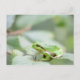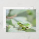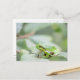 Vykort från en grönt träd groda, hyla arborea, sitta på löv skapande grönt bakgrund. Tagen i Nederländerna.