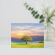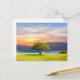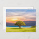 Vackert landskap på vykortet. Ett centralt Träd, mot ett färglöst himlar och vibrerande gräs.