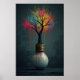 Den här slående väggkonsten visar en surrealistisk naturfusion och kreativitet - en mörk, blyfri träd-blomning från toppen av en glödlampa. Grenar exploderar med ett dynamiskt stänk av rött, gult, blått och orange, som om själva idéerna sprider sig till färg. Trummor med färg som kaskad ner i lampan, symboliserar bildflödet och innovationen. Mot en moody bakgrund med mörk konfronterar biet träd kubikens svält med den strålande energin från dess färgstarka krona, skapar det ett djärvt påstående om kreativitetens kraft att tända världen.