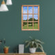 Slappna av inför en sommar träd på en bred grönt grassi gräsmatta, med blå himmel och moln ovanför. Detta är en fredlig scen att titta på från ett falskt fönster, en effekt som skapas genom att ett träfönster ram tas med i fotografiet. Skapar en vy på en ren vägg som du själv kan flytta runt till kostym. Varför inte skapa lite lugn på landsbygden i livet och njuta av sommartid hela året?
