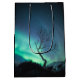 Den arktiska natten himlar fylldes med norra Ljus (Aurora borealis) bakom en björk träd. Plats: ön Kvaløya i norra Norgen, Skandinavien.