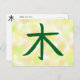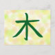 Ett vackert vykort med kanji för träd. Betydelsen av kanji är på baksidan av vykortet.