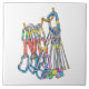 Den här utformningen illustrerar ett klätterställ i sten som har en uppsättning snabbritningar och en uppsättning trådar/sten/nöt hängande från ett klätterfyr. En färgstark design för alla som klättrar i kärlek sten.