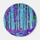 En levande abstrakt av blått träd, lila löv och undertillväxt.