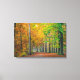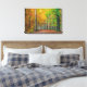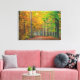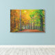 Landskapets kanvas är utskrivet av lövlös träd med löv i höst färger och fallna löv på väg i en skog i Hoge Veluwe-naturreservatet i Nederländerna under höstsäsongen. Underbar dekoration på väggen!