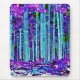 En levande abstrakt av blått träd, lila löv och undertillväxt.