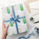 Den här julklappen som omsluter pappra innehåller en bild av tre långa smalor dekorerat Julgranar på en ljusbrant/grått-bakgrund accentuerad med en snöflinga mönster. Guld & grönt anpassade text: God jul Från (NAMN).