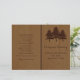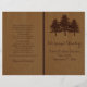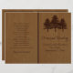 Träd på ceremonin i bröllop och det party-foldade programmet för träbrun trädryck med tre träd på träkorn och text i brunt. Denna moderna och snyggt bröllop-utformning är en fullkomligt anpassade mall och ingår i en bröllop-fastställd perfekt för en skog med skog i skogar i bröllop. Du måste lägga den i mitten. Välj endast den här typen av pappert värde när det viks väl. Observera att det inte bara finns en tryckt bild av trä.
