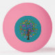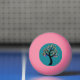 Ljus boll för rosapingpong med ett träd av fjärilar på en sida och ett träd med färgrika skins löv på andra sidan.