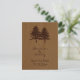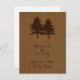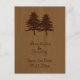 Träd på trä brunt skogsbröllop Spara datumet vykort med tre barrträd på trästruktur och text i brunt. Denna moderna och stilrena bröllopsdesign är en helt anpassningsbar mall och ingår i en bröllopssats perfekt för ett rustikt skogsbröllop . Observera att det inte är riktigt trä utan bara en UTTRYCKT bild.
