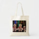 Budget Tote-väskan med det här julfotonet med snögubbarna leksak och Julgran i bakgrunden. Designad av Sandyspider Gifts.
