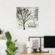 Christian träd poster med skript från Psalm 1:1-3. "Välsignat är mannen...Han är som en träd som planterats med strömmar från vatten." Den inspirerande verandan om en trosmans välstånd. Grunge stil, svart träd grenar över en grafikbakgrund med utskriven svart text på en fyrkantig poster.