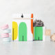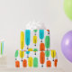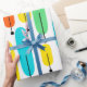 Detta skrotningsdirektiv har en modern utformning av långa ovaler i gult, orange, grönt och turkos med svart linjer med cirklar i ändarna.