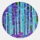 En levande abstrakt av blått träd, lila löv och undertillväxt.