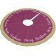 Julgran Skirt Helgdag-kjolt visas i ett kassis vin-lila och made guld färg med pinot noir rosa text av träd skriven hela vägen runt God jul kjolten med ett fast träd färg. anpassa det här objektet eller köpa som det är.