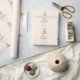 En grädda, mjuk beige bakgrund, mocha, muterad brun text. Dekorerad med en snötäckt gräs träd. God jul är skrivet med ett elegant handskript i stil. Anpassa och lägg till din familj namn.