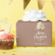 En mocha, muterad brun bakgrund, vit text. Dekorerad med en snötäckt gräs träd. God jul är skrivet med ett elegant handskript i stil. Anpassa och lägg till din familj namn.