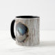 Tillsätt ett litet stycke natur och personlighet till kaffet, teet eller favoritdrycken i hetten med det här vildlivstemade mugg! Perfektens gåva till fågel älskare! Den här manliga Träd Sväljer verkar vara helt tagen med just den här kapellboxen som ser ut som "mina, alla mina". Fotografi i slutet av mars 2016. Dessa små bluebirds har dykt upp nästan en månad senare än förra året, och de ursprungliga flockarna är också mycket mindre. Inte heller vid den här tidpunkten finns det hondjur av gråskalekvalitet som redan fanns här förra året. Ändå är det en underbar upplevelse att se dessa små fåglar i aktion över vatten och i himlar. Baserat på originalfotografiet av W.H. Sim. Alla Höger reserverade. Se mer på zazzle.com/walkswithnature