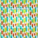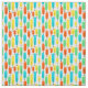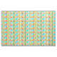 Denna väv har en modern utformning i mitten av århundradet av långa ovaler i gult, orange, grönt och turkos med svart linjer med cirklar i ändarna.