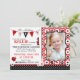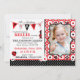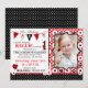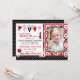 Svart och vit polka-dot-utskrift med blommor och nyckelpiga party-svag-format för inbjudningskort. Ålder