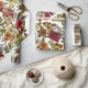 Handdragna trädgårdsfåglar- robin, goldfinch och bulfinch på buketter av blommor och löv- dahlias, krysanthemum, calendula, koneflowers ivy and fernes