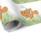 Söt orange clown fish in sjögräs with starfish and bubbles for 3rd födelseår