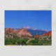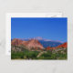 Jag tog denna bild av trädgården av gudarna, precis två dagar för Waldoen som kanjonen avfyrar, började i Colorado Springs, Colorado i Juni av 2012. Himmlarna var lugn, frikänden och cerulean blått. Kontrasten av de röda stenarna mot gröntväxterna som överträffas av med blå himmel, och Pikes som är maximala i bakgrunden, skapar bedöva avbildar. De naturliga flororna och faunaen av landskap skapar ett slå foto med vibrerande yet naturlig färg. Om du gillar denna bild, ta en look på andra produkter i mitt Pictimilitude lager med denna samma avbildar. Para denna vykort med att matcha frimärken och kuvert.