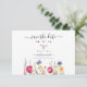 Den här livfulla och förtrollande "save-the-date" bröllopskortet är en firande av kärlek, som blandar bohemisk charm med skönheten i en färgrik trädgård. Den fängslande akvarellillustrationen visar en mängd vilda blommor i varmt rosa, soligt gult, uppfriskande blått och ömt lavendel, och skapar en livlig och romantisk atmosfär. För att anpassa detta ytterligare, klicka på länken "anpassa ytterligare" och använd vårt designverktyg för att justera denna mall enligt dina önskemål.