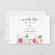 Den här livfulla och förtrollande "save-the-date"-bröllopskortet är en firande av kärlek, som blandar bohemisk stil med skönheten i en färgrik trädgård. Den fängslande akvarellillustrationen visar en mängd vilda blommor i varmt rosa, soligt gult, uppfriskande blått och ömt lavendel, och skapar en livlig och romantisk atmosfär. För att anpassa detta ytterligare, klicka på länken "anpassa ytterligare" och använd vårt designverktyg för att justera denna mall enligt dina önskemål.