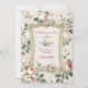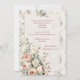 Träd in i en mjuk blommande trädgård med denna romantiska bröllopsfestinbjudan, designad i en delikat palett av rosafärgade rosor, salvia grönt band och luftiga vårblommor.
