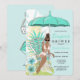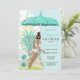 Lingerie möhippeinbjudan med robins äggblå och teal tropiska blommor, paraply och afrikansk amerikansk blivande brud. Finns med blond, brun och röd hår och ljus och mörk hud.