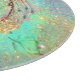 Elegant, färgrik, fantasifull blommig design, livfull magisk skönhet, gnistrande blommor i ljust turkos, blågrön, gula färger, guldgnistor. Blandad mediapåverkan med guld- och silverfolie. Temat berör arketyper och medeltida alkemisk symbolism. Det här är en destillerad vision från västerländsk och orientalisk kollektivt undermedvetna som söker avlägsna bilder djupt inne i den mystiska trädgården med de förlorade skuggorna. Cool, fräck, konstnärlig och mångsidig design för alla ändamål.