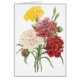 Designen för blomman för vintageillustrationen som arbeta i trädgården den botaniska presenterar en bukett av färgrika blommas blommar för nejlikan (Dianthussp.) från en vår. Nejlikor är perenna växter som växer som en shrub. Den vetenskapliga kända dianthusen översätter till "blomman av kärlek" eller "blomman av gudarna". Den är en av världens äldsta kultiverade blommor som uppskattas för dess rufsade utseendemässiga och kryddnejlika-något liknande doft. Vid den berömda blom- botanikkonstnären Pierre Joseph Redoute (1759-1840).