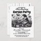Dyk in i roliga upptåg med vår gnistrande svart-vit trädgårdsfest-inbjudan! Följ med oss för en underbar tid medan vi firar i blomsterstil. Förbered er på: Gnistrande rosor, Spännande grönska,🎂 Läcker födelsedagsfirande,🧜♀️ Magiska äventyr utomhus