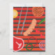 Detta är en rolig och unik inbjudan till barbecuefest som är perfekt för födelsedagsfest, 4 juli-firande, Labor Day och BBQ i trädgården. Inbjudan visar en barbecuegrill med ett antal föremål som ofta återfinns på grillfester såsom korvar, körsbärstomater, hamburgare, biff, lökringar, majs, paprika och en grilltång.