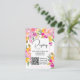 Trädgård ljus blomster vattenfärg bröllopsdusch qr-kod registerkort med handmålad rosa, lila, gul blommor och grönska eukalyptusblad och lövverk med en modern penselfont..