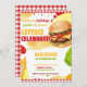 trädgårdsbakfest, bbq-fest inbjudan, burger födelsedagsfest inbjudan,sommar familj årlig grillfest, snabbmat, ranch grillfest, burger, sallad gratulera, gingham inbjudan