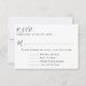 Trädgårdsmeny svars kort. Bifogas med bröllopsinbjudningar och fråga gästerna att välja en rätt från meny listan. Inkludera även text för de som inte kommer att delta. Vitt papper med svarta textmallar. Den blå blomstermönstret är på baksidan. En vit sjöstjärna är placerad bland blommorna och ger denna RSVP en sommar eller strand tema.