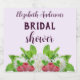 Trädgårdsinspirerad bröllopsdusch med vita dahlior, hallon och myntakvistar med lila typsnitt