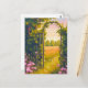 Trädgårdsgrind | Rosa blommor Botanisk akvarell Vykort