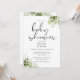 En elegant, stilfull inbjudan till baby shower med elegant typografi och vacker botanisk grönska. Designad av Thisisnotme©