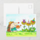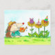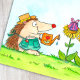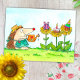 En söt liten igelkott utklädd till trädgårdsmästare vattnade sina solrosor och upptäckte en present, en födelsedagstårta och en partihatt åt sig.