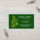 En modern affärskort med ljusare färgad som passar för ett trädgårdsföretag. Detta kort för snyggt illustrerar en färsk anläggning i löv vid träd. Texten är helt och hållet anpassade att inkludera dina egna personuppgifter. Bakgrunden till färg kan också ändras.