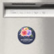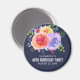 En födelsedags kallelse att spara datum magnet med en fin bukett akvarellrosor med kvistar, blad och grenar tillsammans i ett färgrikt blomsterarrangemang. Marinblå bakgrund.