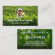 Ett professionellt visitkort utformat för trädgårdsskötsel, landskapsarkitektur och trädgårdstjänster. Det har Desteis riktiga fotografi av en fräsch grön gräsmatta som bakgrund och ett anpassningsbart fotoområde för ett porträtt, vilket ger en personlig touch. Perfekt för lokala proffs som vill bygga förtroende vid första anblicken. Anpassa med ditt namn, kontaktinformation och gör ett varaktigt intryck.