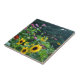 Trädgårdsvy: solblommor daisy av grönskog kakelplatta