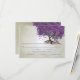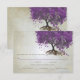 Kajig Magisk Kärleksträd med lila hjärtblad på tefärgat varmt silvertonat metallpapper med en överlappning av antikt notpapper och några söta små virvlande mönster för att förhöja kärlekens rötter på denna unika skogliga bröllopsinbjudan...