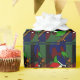 Underbar rolig och gullig trädgroda som ha på sig ett abstrakt slående in papper för röd konst för jultomtenhattjul. Kan också tillfoga beställnings- text, när beställa. Perfekt för personliggåvor under helgdagar.