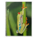 Foto av en färgrik trädgrodaklättring på stemen av en växt. Grodan har röda ögon, orange fot, och blått görar randig upp sidan av hans förkroppsligar, som är grönt annars. Detta kallas en bjärtt lövträdgroda, och fotografera togs i tropikernan av Costa Rica.