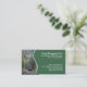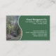En visitkortmall för skogsbruk- och timmerföretag med ett foto av en blåttharvester som avverkar ett barrträd. På bekläda är företagsnamn, adress, och kontakten specificerar på en mörk - den gröna panelen som avskiljs från fotografera av en vit, vågigt fodrar. På det omvänt är placerar utrymme för anställds namn och, och någon annan information. Detta är på det vit färgade kortlagrar, med en anpassadebakgrundsfärg på det omvänt.